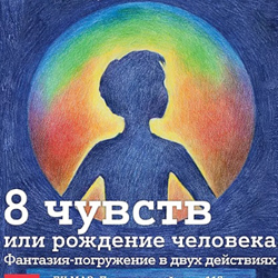 В спектакле “Восемь чувств, или рождение человека” играет около 80-ти актеров – в шесть раз больше, чем в “Чайке”, в четыре раза больше, чем в классической белорусской “Павлинке”. Главные герои спектакля “Восемь чувств, или рождение человека” — противоречивые чувства, которые время от времени охватывают каждого: злость, грусть, интерес, обида, страх, радость, удовольствие, вина.