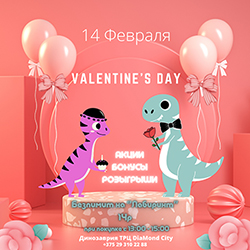 Вечером 14 февраля в 18.30 мы ждём Вас на вечеринке с нашими любимыми динозавриками и сладким сюрпризом для каждого гостя.