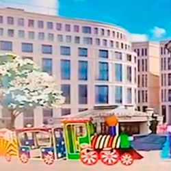 Возле цирка установили новую фотозону - паровозик с цветными вагончиками.