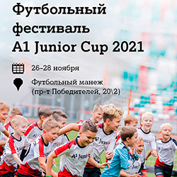 С 26 по 28 ноября столичный клуб «А1 Юниор» проведет футбольный фестиваль A1 JUNIOR CUP 2021. Мальчики и девочки от 7 до 13 лет покажут свои навыки игры и поборются за награды. Фестиваль пройдет в Футбольном манеже (пр-т Победителей, 202).