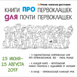 Будущим первоклашкам предлагается стать на книжную дистанцию! Это значит, прочитать - в любом порядке заявленные книги, ответить на наши каверзные вопросы, а в августе прийти на первоклассный книжный урок от ЗаЧтения.