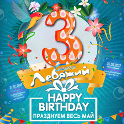 Аквапарку Лебяжий исполняется 3 года! Детей и взрослых ждет множество веселых активностей с аниматорами, огромное количество розыгрышей призов от ведущего, конкурсы, фотосессии и праздничное настроение!
