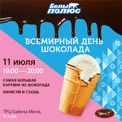 Музей мороженого «Белы Полюс» подготовил к празднику съедобный шоколадный холст, на котором появится съедобный белый медведь, северное сияние и снежные сугробы. Участники шоколадного пленэра смогут оценить не только внешний вид арт-объекта, но и попробовать его на вкус.